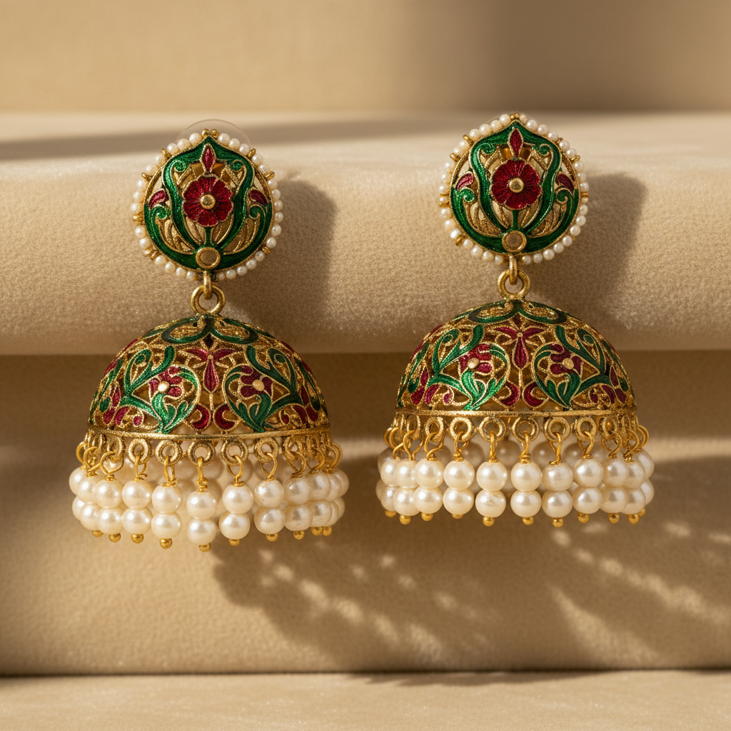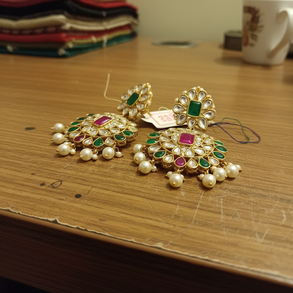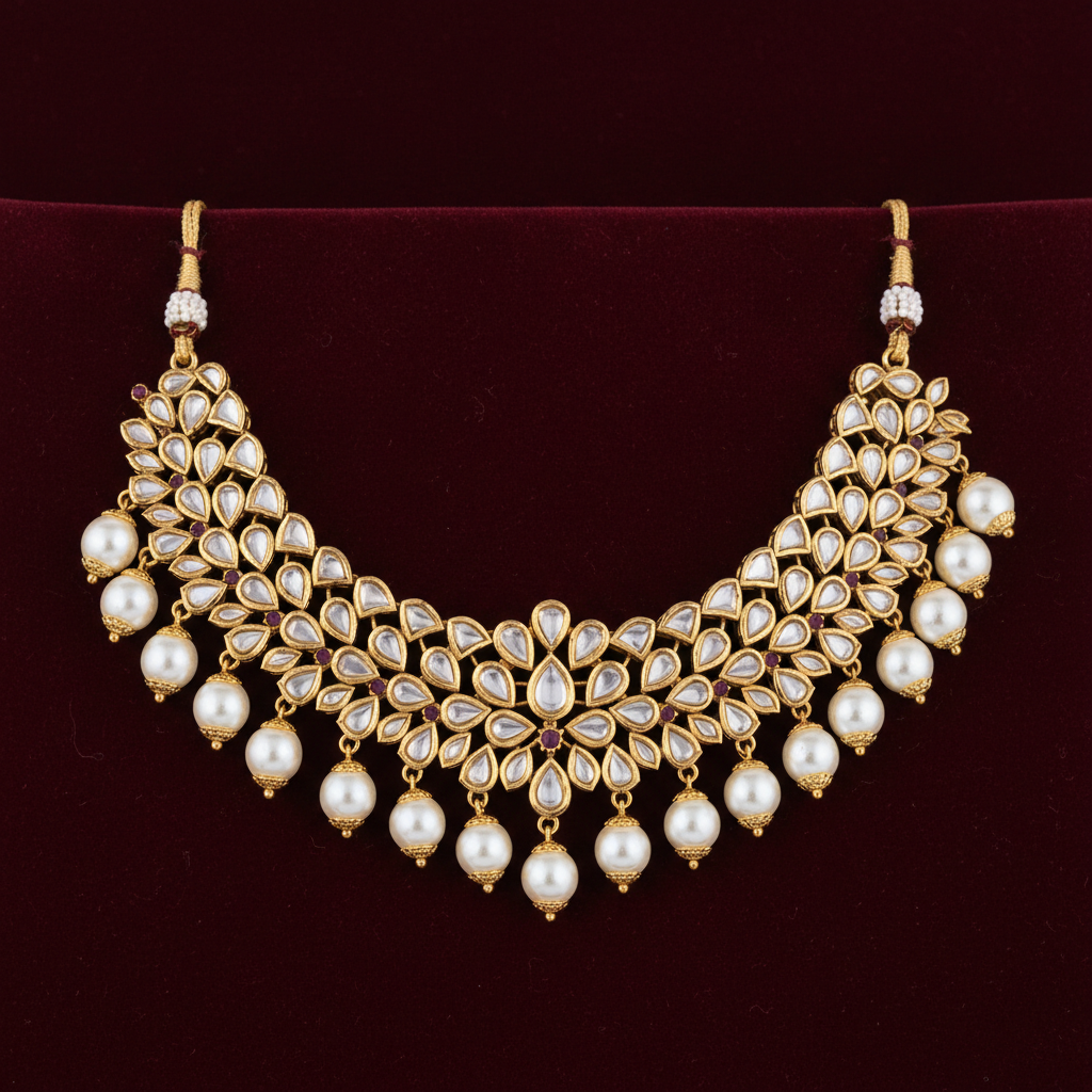 Three generations of Jaipur craftsmen. Polki, kundan, and bridal jewellery, hand-finished in the old city.