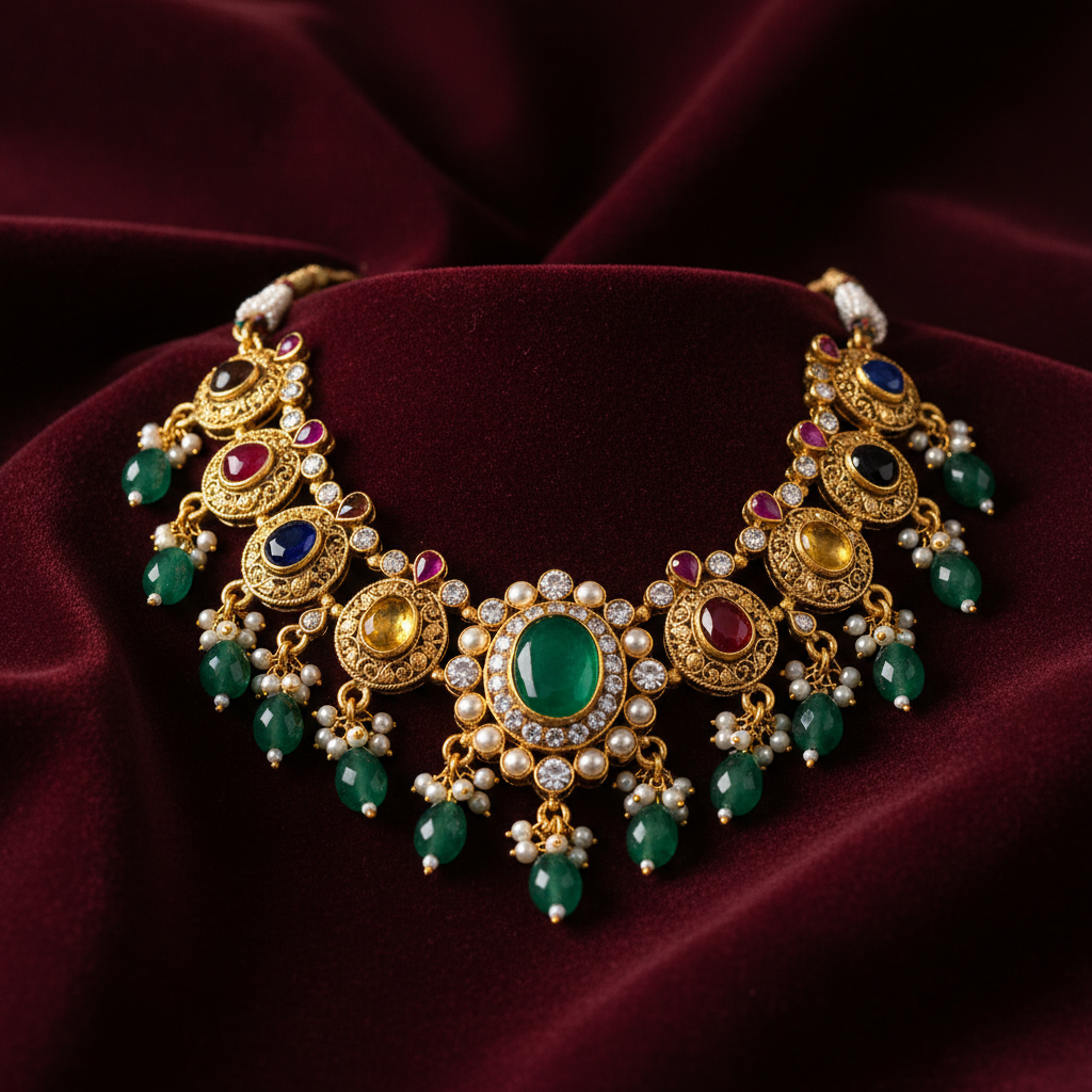 Navratan Emerald Necklace